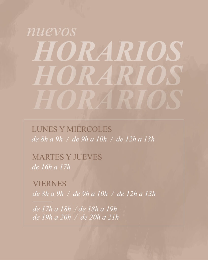 Lunes y miércoles: 16:00 – 21:00 (última clase a las 21:00) Martes y jueves: 17:00 – 21:00 (última clase a las 20:00)